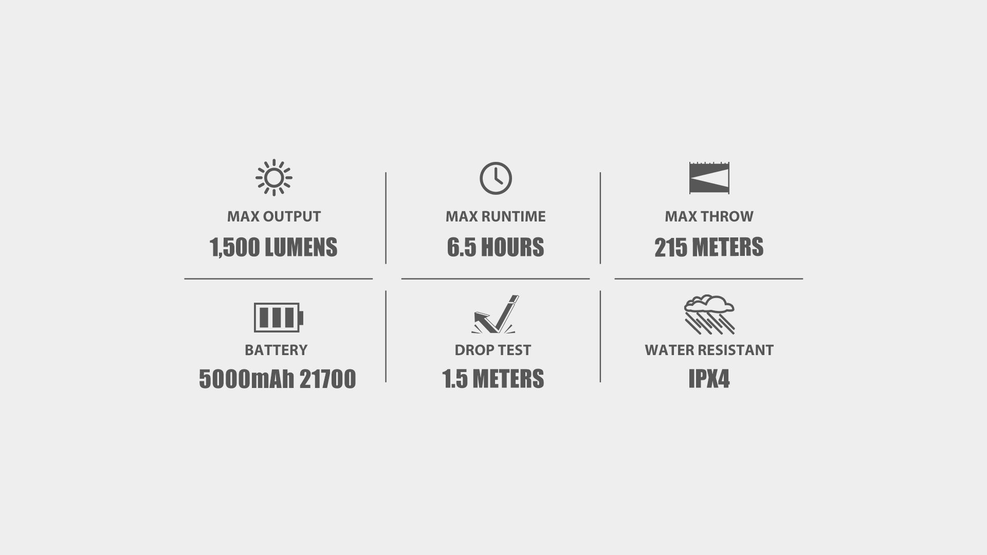 ✔️ Powerful white LED for long-range, high-intensity illumination (1500 lumens/215 throw)
