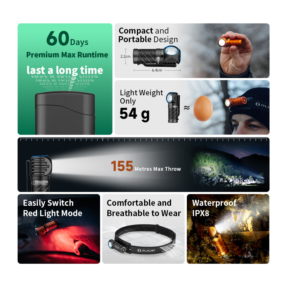 OLIGHT Perun 3 Mini Premium Edition – Compact Headlamp & EDC Flashlight (1250L/155M)